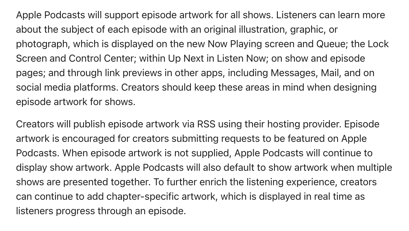 ‘Episode artwork is encouraged for creators submitting requests to be featured on Apple Podcasts.’